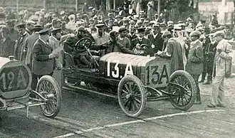 - ↑ Einzelne Quellen führen für den Grand Prix von 1906 zusätzlich ein Verbrauchslimit von 30 l Treibstoff pro 100 km gefahrene Strecke an, dabei scheint es sich jedoch offenbar um eine Verwechslung mit 1907 zu handeln. Ein Foto 1906 French Grand Prix Szisz pit stop zeigt Szisz auch beim Nachtanken