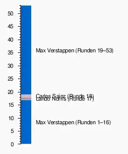 Die beiden Ferrari konnten im Anschluss Alonso überholen, während an der Spitze Verstappen an Russell vorbeiging, welcher noch nicht gestoppt hatte. Auf Verstappen folgten nun Piastri, der von einem VSC bei seinem Stopp profitierte, Norris, Leclerc und Sainz. In der 22. Runde konnte dann auch Hamilton Alonso für den siebten Platz überholen.