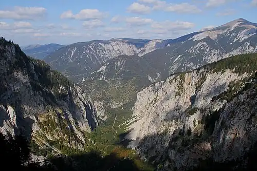Das Große Höllental in Niederösterreich ist ein offener Felskessel und ein Nebental des Höllentals an der Nordostseite des Raxmassivs nächst dem Weichtalhaus.