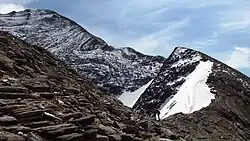 | Großes Wiesbachhorn von Nordwesten mit Normalweg vom Heinrich-Schwaiger-Haus (Mitte rechts via Oberer Fochezkopf und Kaindlgrat) | ||