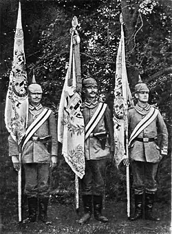 ↑Die Avancierfahne wurde beim Vormarsch getragen, die Retrierfahne beim Rückzug.