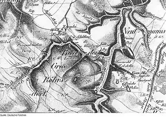 „Gros Röhrsdorf“ auf einer Karte aus dem Oberreitschen Atlas, Mitte des 19. Jahrhunderts