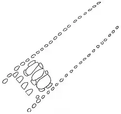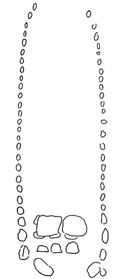 Die Kammer besaß ein Pflaster aus Lehm und Sandsteinplatten. Sie war durch aufrecht stehende Platten in Quartiere eingeteilt. Außerdem gab es Anbauten aus kleinen Blöcken und Platten.