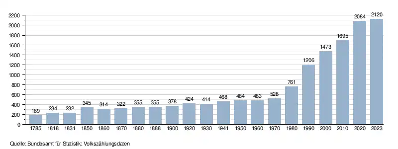 Einwohnerzahlen: Volkszählungsdaten[1][2] Angaben ab 2000 inkl. Corsalettes (Eingemeindung 2000)
