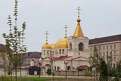 Die am 17. Oktober 2008 eingeweihte Achmat-Kadyrow-Moschee ist mit zehntausend Plätzen die größte Moschee Russlands. Ihre Minarette sind 62 m hoch.[11] Die 1868 von den Terekkosaken erbaute orthodoxe Erzengel-Michael-Kirche wurde während der beiden Kriege schwer beschädigt, im Jahr 2009 wurden jedoch die Renovierungsarbeiten abgeschlossen und die Kirche feierlich wieder eingeweiht.