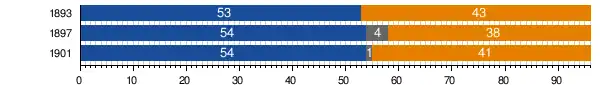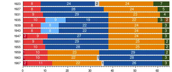 Nachfolgend sind die Sitzverteilungen der Parteien jeweils nach den Grossratswahlen von 1875 bis 2023 dargestellt.[6][7][4]