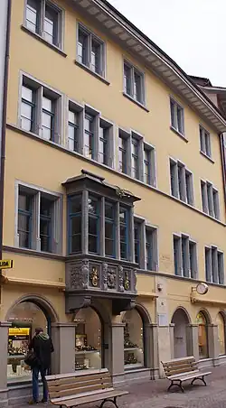 Das Gebäude (Fronwagplatz Nr. 24) steht am nördlichen Teil des bedeutenden städtischen Platzes. Die Strasse «Vorstadt» beginnt etwas weiter. Gegenüber dem hinteren Ausgang an der «Krummgasse» liegt das Stadthaus, ehemals «Haus zur Freudenquelle» (A-Objekt, KGS-Nr. 4392).
