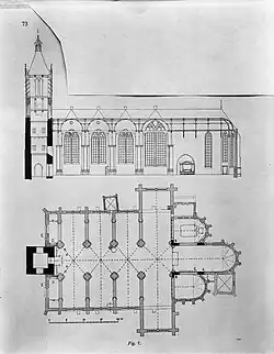 Die Bedachung des Schiffs besteht aus einem Längsdach und vier Querdächern. Deren östlichstes bedeckt das Querschiff, die drei anderen bedecken die Seitenschiffe des Langhauses. Deren westlichste Abschnitte, kürzer als ein normales Joch, hat jeweils einen First in Längsrichtung der Kirche und ein Giebeldreieck neben dem Westturm.