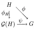Ist ein Halbgruppen-Homomorphismus in der Kategorie der kommutativen Halbgruppen, so kann man wie folgt einen Gruppenhomomorphismus konstruieren. Mittels erhält man zunächst einen Halbgruppen-Homomorphismus und daraus mittels der universellen Eigenschaft einen Gruppen-Homomorphismus mit .
