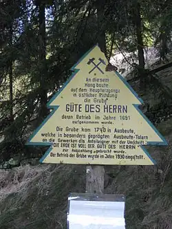 Weiterhin ist im Hanggelände ein Lochstein aus dem Jahr 1753 erhalten, der die Markscheide zur Grube Segen Gottes kennzeichnet. Die Inschrift lautet: „ALHIER WENDET DER GRUBE GÜTE DES HERRN FELD ALS FÜNF MASSEN VON DEM LAUTENTHALSGLÜCKER UNTERN LOCHSTEIN UND MARKSCHEIDET MIT DER GRUBE SEEGEN GOTTES VICE OBER BERGMEISTER GEORG VALENTIN KRAUS UNTERBERGMEISTER JOHANN FRIEDR. KASTENBEIN STUF GESCHWORENER JOHANN GEORG HONIG DEN 16. OCTBR. 1753“.