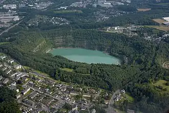 Die Grube misst[2] in der West-Ost-Ausdehnung rund 840 Meter und in der Nord-Süd-Ausdehnung rund 690 Meter (gemeint ist hier der Bereich, der für die Öffentlichkeit abgesperrt ist). Betrieben wird die Grube von der Rheinkalk GmbH Werk Dornap (mit Unternehmenssitz in Wülfrath), der eigentliche Abbau ist aber eingestellt und die Grube wird als Klärteich für die benachbarte Grube genutzt. Der Wasserspiegel liegt rund 40 Meter unter dem Bodenniveau der Umgebung (bezogen auf Wieden, das rund 190 Meter über Null liegt).