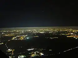 Unterhalb der Grenzschicht wird das Licht der Stadt stark gestreut, oberhalb davon pflanzt es sich bis in den Weltraum fort.
