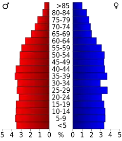 25,1 Prozent der Bevölkerung waren unter 18 Jahre alt, 9,0 Prozent zwischen 18 und 24, 27,8 Prozent zwischen 25 und 44, 24,1 Prozent zwischen 45 und 64 und 14,0 Prozent waren älter als 65. Das Durchschnittsalter betrug 37 Jahre. Auf 100 weibliche Personen kamen statistisch 96,7 männliche Personen und auf 100 Frauen im Alter von 18 Jahren und darüber kamen 94,3 Männer.