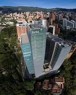 Am 12. Dezember 1944 wurde in Medellín, Antioquia, die Compañía Suramericana de Seguros S.A. gegründet,[4] die sich der Versicherungstätigkeit in Kolumbien widmete. Das Unternehmen wuchs, eröffnete neue Geschäftszweige und nahm andere wichtige kolumbianische Unternehmen in sein Investitionsportfolio auf. In den 1970er Jahren wurde angesichts der feindlichen Übernahmeversuche durch Wirtschaftsgruppen aus anderen Regionen des Landes ein Prozess zum Schutz der regionalen Industrie durch Aktientausch zwischen Unternehmen mit Ursprung in Antioquia, wie Suramericana de Seguros, Cementos Argos und National Chocolate Company, durchgeführt.