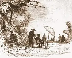 Grimms Unterrichts- und Malweise „en Plein Air“ stand im Gegensatz zur traditionellen Ateliermalerei der Kunsthochschule AIBA. Ständige Auseinandersetzungen mit der Akademieleitung und seinen konservativ orientierten Kollegen waren die Folge. Als man seine Bemühungen um eine Festanstellung als Professor ablehnte, kündigte er Mitte 1884 seine Stelle. Mit ihm verließen auch seine treuesten Mitschüler die Akademie und zogen an den Strand von „Boa Viagem“ (daher auch Escola da Boa Viagem genannt[1]) in Niterói und setzten unter Leitung des Meisters die Studien der Freilichtmalerei fort.[2][3][4] Levy bezeichnet diese Episode als Höhepunkt der Geschichte der „Grupo Grimm“.[1]