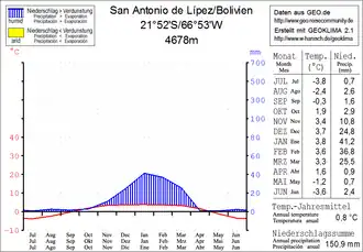 ![]() Klimadiagramm San Antonio de Lípez | |||
