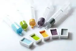 Gummi arabicum wird bereits seit dem Mittelalter[14][15] zur Herstellung von Künstlerfarben verwendet: für Aquarell-, Gouache- und Temperafarben. Dabei dient es als Bindemittel für die Farbpigmente. Auch in der Glasmalerei werden die pulvrigen, keramischen Glasschmelzfarben damit malfähig angerieben. Im Orgelbau wird Gummi arabicum in einer Mischung mit Kreide und einem Farbstoff zum Oberflächenschutz und als Hitzeschutzfarbe beim Löten während der Fertigung von Metallpfeifen (meist Zinn-Blei-Legierung) eingesetzt.