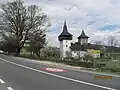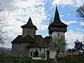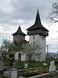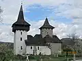 - Die Kirche Sf. Arhanghel Mihail (⊙, deutsch Erzengel Michael), im 13. Jahrhundert errichtet, ist ein steinerner Kreuzbau mit drei runden Apsiden an den Kreuzarmen. Der ältere Teil der Kirche, in rechteckiger Form und gewölbter Decke – einzigartig in dieser Form in Siebenbürgen –, wurde mit wasseranziehendem Mörtel errichtet.[6] Über der Vorhalle ist der Glockenturm, die Seitenschiffe wurden 1820 angebaut. Die oberste der zwei Farbschichten stammt von 1765, wurde von den Meistern Ioan aus Deva und Nocolae aus Pitești gemalt und mit kyrillischen Inschriften versehen. Im Friedhof um die Kirche sind alte Steinkreuze zu sehen.[4] Die Kirche befindet sich an der Europastraße und steht unter Denkmalschutz.[8]