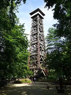 Nach entsprechenden Spenden bekam Gustav Gerst die Ehrenbürgerwürde der jungen Frankfurter Universität verliehen. Zunächst anonym, aber nachhaltig war 1931 seine Spende von 28.000 Reichsmark (heutiger Wert ca. 350.000 Euro) an den Frankfurter Oberforstmeister Hans Bernhard Jacobi für die Errichtung des Frankfurter Goetheturms. Er knüpfte allerdings, entsprechend dem damaligen politischen Zeitgeist, zwei Bedingungen an seine Spende: Erstens wollte er niemals genannt werden und zweitens sollte man dafür sorgen, dass der neue Goetheturm 200 Jahre hält. Am 23. November 1931 wurde der neue Goetheturm mit einer äußerst schlichten Feier eingeweiht.[1][2] Erst nach seinem Tod in der Emigration in den USA 1948 wurde diese Spende öffentlich.