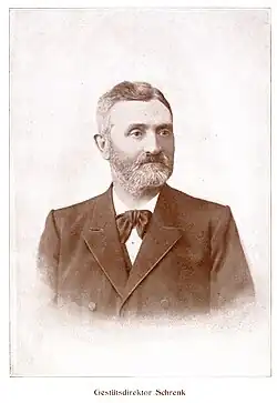 Gustav Schrenk,[1] vollständiger Name Friedrich Gustav Schrenk[2] (geboren 24. November 1833[3][2] in Niedernstöcken bei Mandelsloh; gestorben 11. Februar 1914 in Hannover) war ein deutscher Tierarzt, Pferdezüchter und langjähriger Gestütsdirektor des königlichen Hofgestüts in Hannover-Herrenhausen.[1]