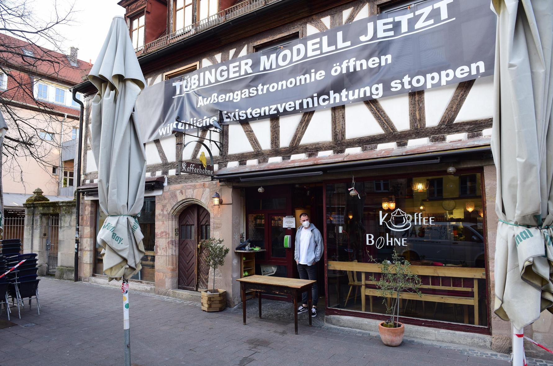 - ↑ Pressefoto „Tübinger Modell jetzt“. Auf: Nordbayern.de (Abruf: 3. April 2021)