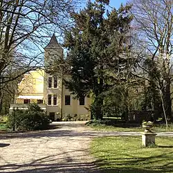 In einem offenen, dem englischen Landschaftspark nachempfundenen Gelände, liegt das historische Haupthaus aus dem Jahr 1691 mit seinem vierstöckigen schlanken Turm, der durch seine Maueranker das Baujahr verrät. 1897 wurde das Haupthaus durch einen Anbau in historistischen Formen erweitert. Die geschwungene Freitreppe an der nordwestlichen Rückseite verweist noch auf die alte Zufahrt über eine dreifache Brückenanlage.