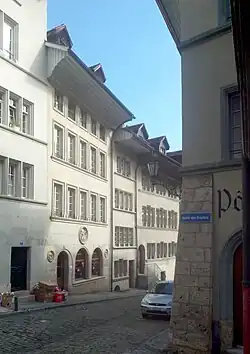 - ↑ a b Christa Mutter: Vom Brot zum Buch, Die Geschichte des Kornhauses. In: Das Gutenberg Museum. Sonderdruck der Fondation du musée Gutenberg. S. 5.