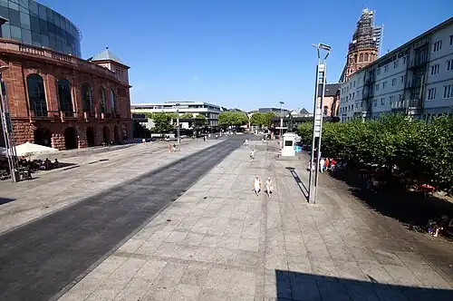 - ↑ Maria Wenzel und Henrik Karge: Die Innenstadt. Das neue Gesicht des alten Mainz – Plan oder Zufall? In: Arbeitskreis Stadtplanung und Denkmalpflege am Kunstgeschichtlichen Institut der Johannes-Gutenberg-Universität Mainz: Mainz bleibt Mainz? Überlegungen zur Stadtgestalt. Mainz 1984. S. 38