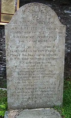 - William Thomas, genannt Glanffrwd: Plwyf Llanwyno, yr Hen Amser, yr Hen Bobl, a'r Hen Droion. Pontypridd 1888, 2. Aufl. 1913. Neuausgabe, herausgegeben von Henry Lewis: Gwasg Prifysgol Cymru, Caerdydd 1949.