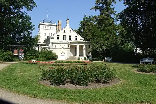 Der Gutspark Marienfelde schließt sich unmittelbar an den Marienfelder Dorfanger und die Gebäude des ehemaligen Rittergutes an.