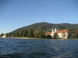 Das ehemalige Klostergelände vom See betrachtet.