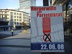 - ↑ Bürgerentscheid Ostring: Sonntagsfrage am 22. Juni. In: Westdeutsche Allgemeine Zeitung vom 28. März 2008. (online ( vom 24. September 2015 im Internet Archive))