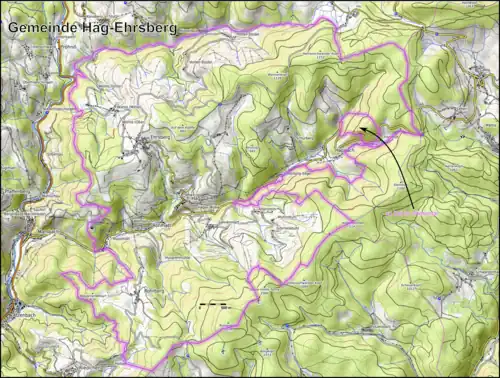 - ↑ LUBW-Karte des Gemeindegebiets von Häg-Ehrsberg mit Gemarkungsgrenzen auf: Daten- und Kartendienst der Landesanstalt für Umwelt Baden-Württemberg (LUBW) (Hinweise)