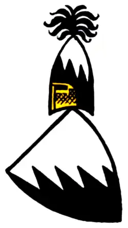 - Durch Spitzenschnitt (4 1/2) schrägrechts geteilt von Weiss und Schwarz