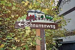 - die als Bahntrassenweg genutzte ehemalige Hälvertalbahn in Schalksmühle (bis Ende der 1960er Jahre waren hier noch Reste der Geleise zu erkennen). Dieser Weg, der heute die erste Station zu dem Bachtal des Reuelsiepen ist und von dort zu dem Bauernweiler Halverscheid führt, heißt im Volksmund "Schnurrenweg".