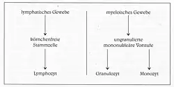 1878 ließ Neumann im Zusammenhang mit der Erstbeschreibung der erkrankten Markzelle (heutige Myeloische Leukämie) auch die Leukozytopoese aus der „lymphoiden Markzelle“ sich entwickeln. Ursprungsgewebe sei das Parenchym.[4]