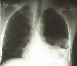 Unter Hämatothorax, auch Hämothorax genannt, versteht man eine Ansammlung von Blut im Pleuraraum. Es handelt sich um eine exsudative[1] Form des Pleuraergusses.