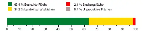 Es besteht zu 63,4 % aus bestockter Fläche, zu 34,2 % aus Landwirtschaftsfläche, zu 2,1 % aus Siedlungsfläche und zu 0,4 % aus unproduktiven Flächen.