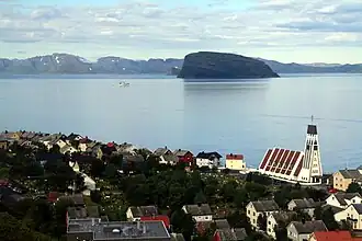 - Die Schiffe der Hurtigruten passieren die Insel an ihrer Südseite auf der Teilstrecke von Hammerfest nach Øksfjord.