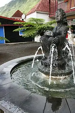 In der Mitte eines kreisrunden Brunnenbeckens erhebt sich eine sitzend dargestellte steinerne Frauenskulptur. Sie wurde im Jahr 2000 von Gilbert Claine geschaffen und stellt die legendäre Sklavin Héva dar, die gemeinsam mit ihrem Partner Anchaing auf dem Piton d’Anchaing Zuflucht gefunden hatte. Sie gilt als Symbol für die erste Frau und erste Heldin auf der Insel Réunion.[1] Ihr Blick ist dabei nach Grand-Îlet ausgerichtet, wo sich ein Denkmal für Anchaing befindet.