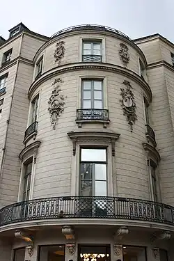 Das Hôtel Radix de Sainte-Foix besteht aus einem Rundbau zum Boulevard de la Madeleine und zwei anschließenden Baukörpern, die einen Innenhof umschließen. Deren Fassaden zur Straße sind mit Girlanden geschmückt. Den Rundbau schmücken allegorische Reliefs, die die Musik darstellen. Auf der ersten Etage des Rundbaus sind die Wandvertäfelungen und der Deckenschmuck erhalten geblieben. Obwohl heute der Rundbau ein Geschäft für Innendekoration beherbergt, wurde die alte Bausubstanz nicht zerstört.