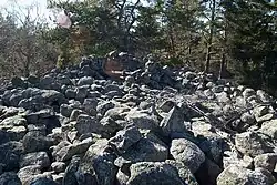 Unter der Steinsetzung der Bronzezeit liegt der Sage nach ein großer Goldschatz, der von einem Drachen bewacht wird.