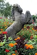 Steigendes Pferd | Die originale Bronzeplastik wurde 1939 anlässlich der Reichsgartenschau aufgestellt und Anfang der 1950er Jahre verkauft. Der 1955 mit leichten Änderungen geschaffene Nachguss wurde anlässlich der Landesausstellung Baden-Württemberg aufgestellt. | Fritz von Graevenitz | 48,80611° N, 9,17226° O |
