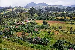 Die wesentlichen Anbauprodukte sind (nach einer Studie von 1987) im zentralen Distrikt Nonno westlich von Addis Abeba (West-Shewa-Zone in der Region Oromia) in der trockenen Kola außertropische Feldfrüchte wie Sorghumhirsen, Mais und Sesam, in der feuchten Kola Sorghum, Mais, Teff und Chili, in der feuchten Woina Dega Teff, Gerste, Mais, Sorghumhirsen, Weizen, Ramtillkraut und Fingerhirse sowie in der nassen Woina Dega Teff, Gerste, Mais, Sorghumhirsen, Weizen, Bohnen und Kichererbsen. Auf bewässerten Feldern werden hier außerdem in kleineren Mengen Linsen, Kohl, Zwiebeln und Knoblauch angebaut.[11] Für den Export bedeutend ist der Anbau von Kaffee in der Provinz Kaffa. Dort wächst Kaffee in einer Höhe von 1500 bis 1800 Metern auch wild.[12] Wesentlich zur Selbstversorgung für über 20 Prozent der äthiopischen Bevölkerung sind die in der Umgebung der Dorfhäuser angebauten Ensete (eine Bananenart, deren Scheinstamm einen Stärkebrei liefert).[13] Ensete gedeiht hauptsächlich in der Woina Dega im südlichen Äthiopien oberhalb von 1600 Metern und im Norden auch in feuchten Tälern bis zu rund 3000 Metern Höhe.[14]