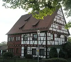 - Das Pfarrhaus wurde 1551 vom Ortsherren Marquard von Schwendi als sein Wohnhaus erbaut. Das Fachwerkgebäude wurde in den 1970er-Jahren renoviert.