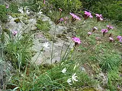 Das Zusammentreffen mehrerer Faktoren macht die Hörre für botanisch Interessierte attraktiv. Zum einen ist es die geologische Vielfalt der zugrunde liegenden Hörre-Zone. Zum anderen liegt es daran, dass diese Region des Mittelgebirges an der Grenze zwischen kontinentalem und maritimen Klima liegt und in den Eiszeiten nie vergletschert war. Auf den Spuren von Catharina Helena Dörrien, Johann Daniel Leers oder Karl Löber kann die zum Teil noch erhaltene Artenvielfalt erkundet werden.[8] Für den Kenner verwirrend ist die Hybridisierung einheimischer Arten, z. B. Lilien, durch den ehemaligen botanischen Garten der Hohen Schule Herborn oder den historistischen Park der Villa Haas.[9] Neben einer Vielzahl von Neophyten wie Mahonie, Riesen-Bärenklau etc. sind an schwer zugängigen Felshängen trotz aller Unkenrufe[10] noch Restbestände endemisch vorhandener Mehlbeeren, Elsbeeren, Holzäpfel etc. erhalten.