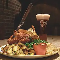 Die Hövels Hausbrauerei ist nicht nur eine traditionelle Dortmunder Brauerei, sondern zugleich auch ein bekannter Gastronomiebetrieb. Das Brauhaus liegt am Dortmunder Wall, nur wenige Minuten von der Innenstadt entfernt im Gebäude der Thier-Galerie.[51] Die Hövels Hausbrauerei verfügt über einen Schankraum, ein Geheimratszimmer, die Hövels-Stube, das Küferzimmer und einen Biergarten. Im Jahr 2018 wird die Gastronomie mit Gasträumen und Biergarten um einen Pavillon im Außenbereich erweitert.[52] Hövels Original findet sich in ausgewählten Rezepten als Bestandteil der Speisekarte wieder.[53][54][55]