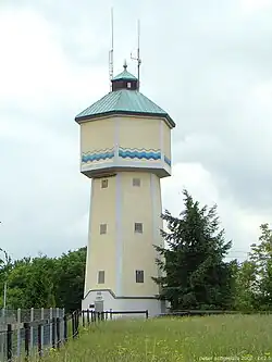 - Auf einer Anhöhe am Ortsrand in Richtung Kälbertshausen befindet sich ein weithin sichtbarer Wasserturm.