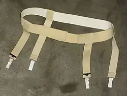 Der Hüftgürtel oder Strapsgürtel ist ein gürtelförmiges Kleidungsstück mit dem alleinigen Zweck, mithilfe von Strumpfhaltern die Strümpfe zu befestigen.[1] Es wird zwischen Unterwäsche und Oberbekleidung getragen.