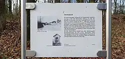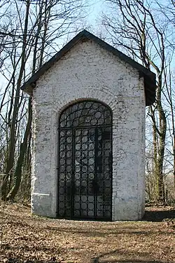 Die alte Kapelle aus dem 18. Jh. wurde bei den Kämpfen im Zweiten Weltkrieg zerstört und 1950 wieder aufgebaut. Die Denkmalliste der Gemeinde Langerwehe beschreibt sie als ein nischenförmig geöffnetes Kapellengebäude aus Bruchstein mit Ziegelausflickungen, das im Innern eine barocke lebensgroße Kreuzigungsgruppe aus Holz beherbergt. Der Grundriss ist quadratisch mit abgerundeten Ecken an der Rückseite. Das Satteldach mit rückwärtigem Walm ist mit Schiefer gedeckt.